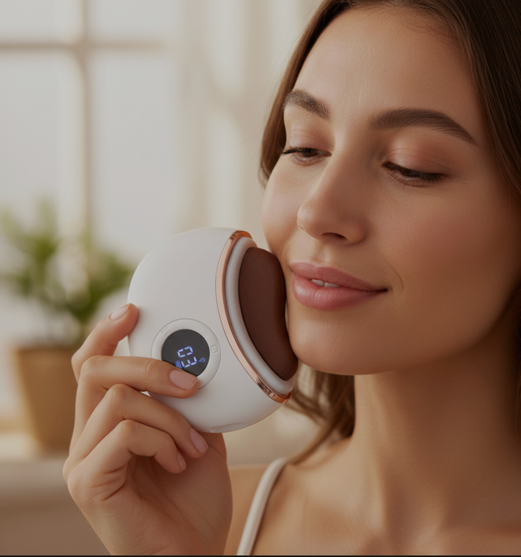 Experience a new era of skin revitalization with our powered gua sha. Blending traditional technique with modern technology, it delivers gentle vibration and soothing warmth to release tension, boost circulation, and enhance natural radiance. Its ergonomic design makes every glide effortless, leaving your skin refreshed, sculpted, and deeply relaxed